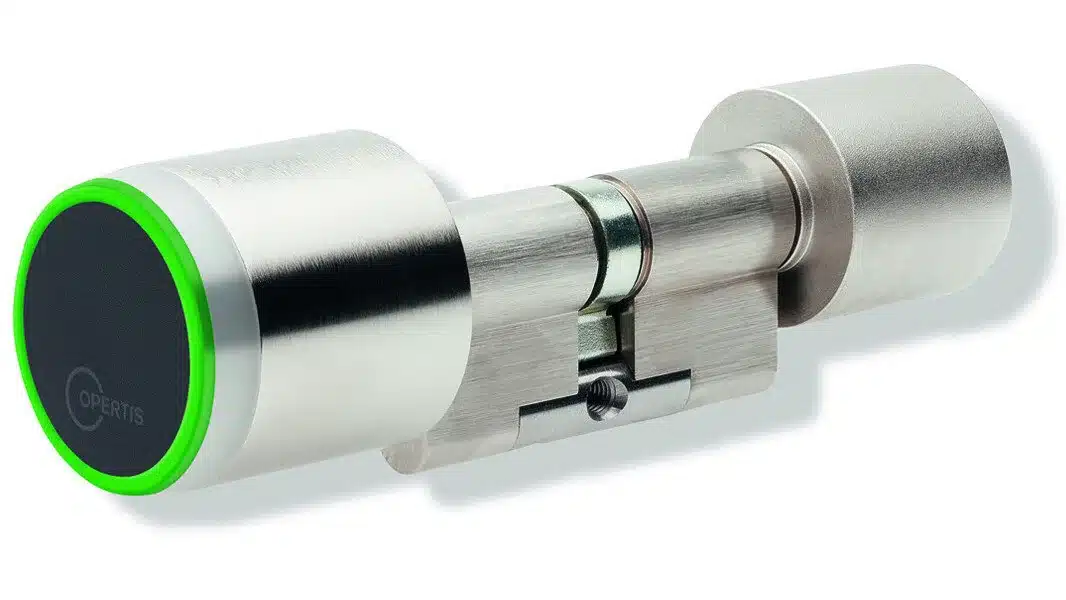 Die elektronischen Zylinder von OPERTIS sind nach DIN EN 15684 geprüft und lassen sich problemlos in bestehende PZ-Schlösser einbauen, wenn diese kein Zieschutz haben und mit 35mm vom Türrahmen entfernt sind.